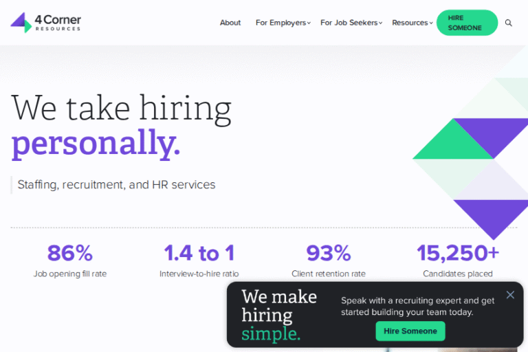 At 4 Corner Resources, we pride ourselves on being more than just a staffing firm. Our mission revolves around connecting talented individuals with roles that not only fit their skills but also ignite their passions. We specialize in a range of sectors, including IT, finance, marketing, healthcare, legal, and corporate services, making our work both dynamic and impactful.