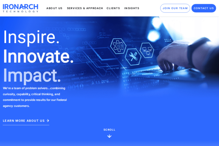 At IronArch Technology, we pride ourselves on being a dynamic team that delivers tailored technology solutions to meet our nation’s modernization challenges. Our mission is not just about technology; it’s about people. We engage top talent, with a special emphasis on veterans, fostering an inclusive environment where every voice is heard and valued.